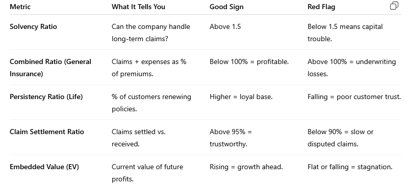 Essential Ratios & Metrics — how to read solvency, persistency, and claim settlement like an analyst.